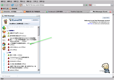 如果你在別人的電腦想要上msn,或者電腦沒灌msn臨時要用時怎麼辦?現在有一種網路線上版的msn喔… http://x15.iloveim.com/servlets/loginPage, 進到首頁之後,可以直接輸入msn的帳號/密碼登入
