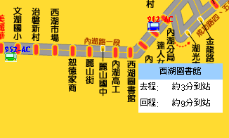 滑鼠指到站牌,會出現預估公車到達的時間,這個是最重要的資訊,因為我租房子樓下就是公車站牌,所以我出門前只要上網看一下我要坐的公車幾分鐘後會到達,這樣實在是太方便了,如果有PDA的話那更隨時隨地都能查。