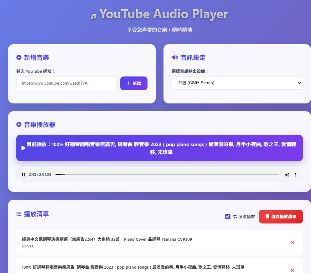不到二個小時我又請AI寫了真正是web版的youtube播放器,而且我驗證過是串流的方式,並沒有下載在本地端浪費本地空間。