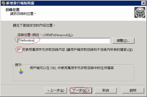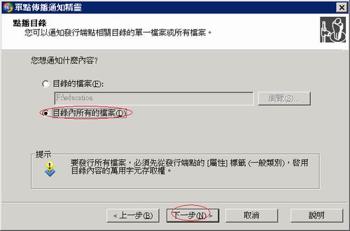 選擇目錄中檔案,設定只要放檔案進來目錄就能被連結,下一步