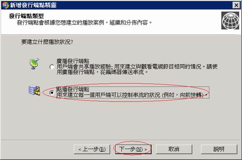 因為只是vod,所以選擇點播,若要做即時時況轉播的串流的效果請選擇廣播